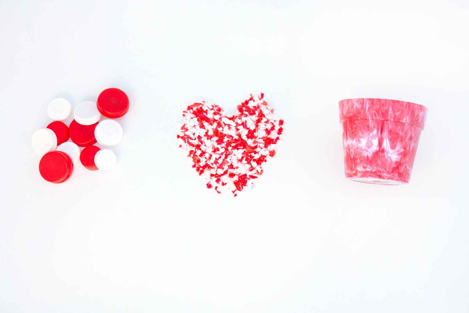 Hierna versnipperen wij de plastic doppen en deze snippers zetten we vervolgens, d.m.v. hitte en het werken met mallen, om in nieuwe, duurzame producten die meer dan een leven lang mee gaan.
